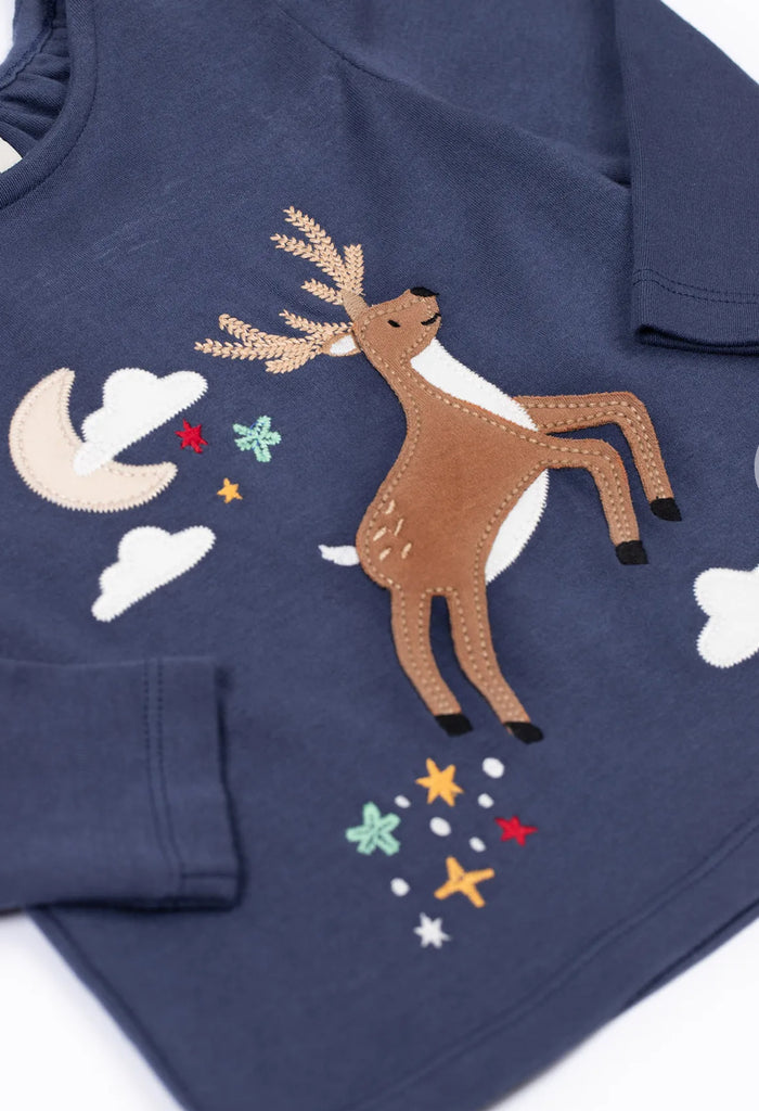 Keep your little one cosy in our Caris Applique Top, made from organic cotton for ultimate softness and snuggly comfort. This long-sleeved top features soft gathers at the sleeves and the swing-shaped hem give it a sweet, easy-going silhouette. Designed with easy dressing in mind, it has a fully elasticated back neck to make getting ready hassle-free. Perfect for everyday adventures this Christmas and beyond!