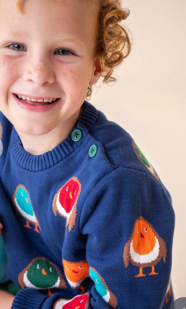 Wrap them in warmth and colour with our Jolly Knitted Jumper for festive fun and everyday cosiness! Crafted from organic cotton knit, it is a super soft and snuggly layer and is perfect for chilly days, festive fun and winter adventures.