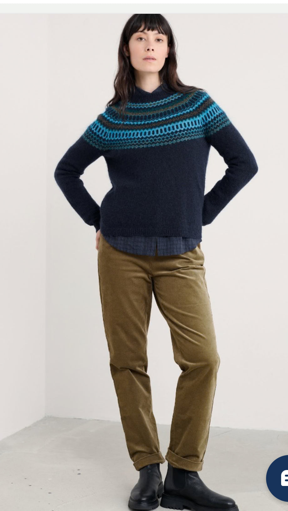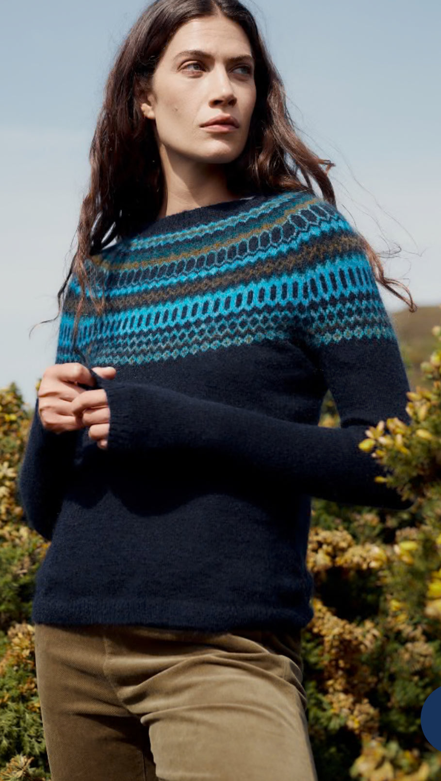 A soft crew neck jumper in a warm seven-gauge knit, made with mohair. An effortless easy fit with comfortable raglan sleeves and a curved Fair Isle pattern that wraps around the chest and shoulders for a classic, heritage feel. Perfect for seasonal layering as days grow cold.