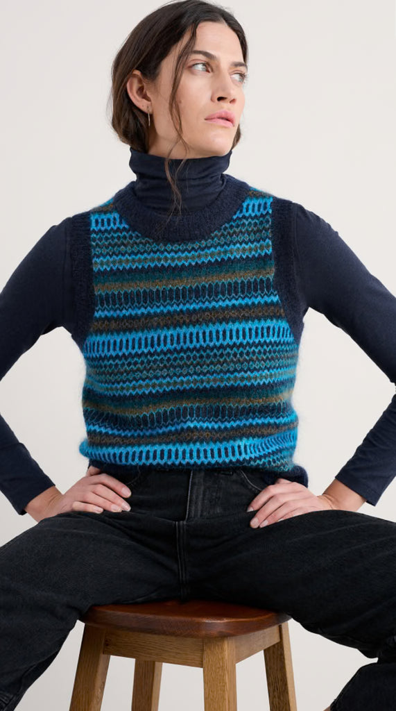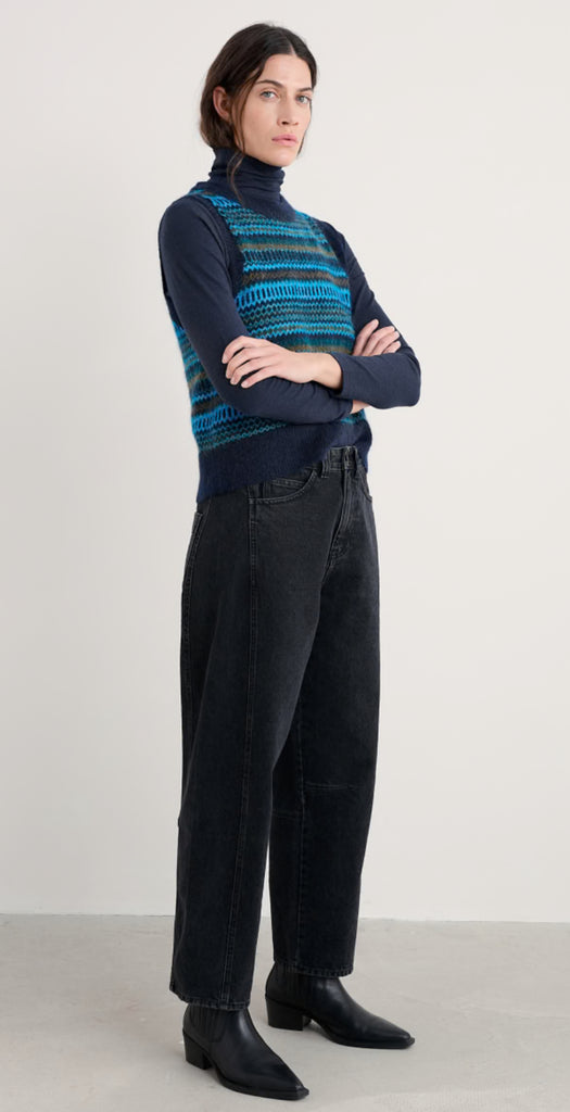 Brakeburn Sylvia Long Sleeved Roll Necked Top - Navy Stripe