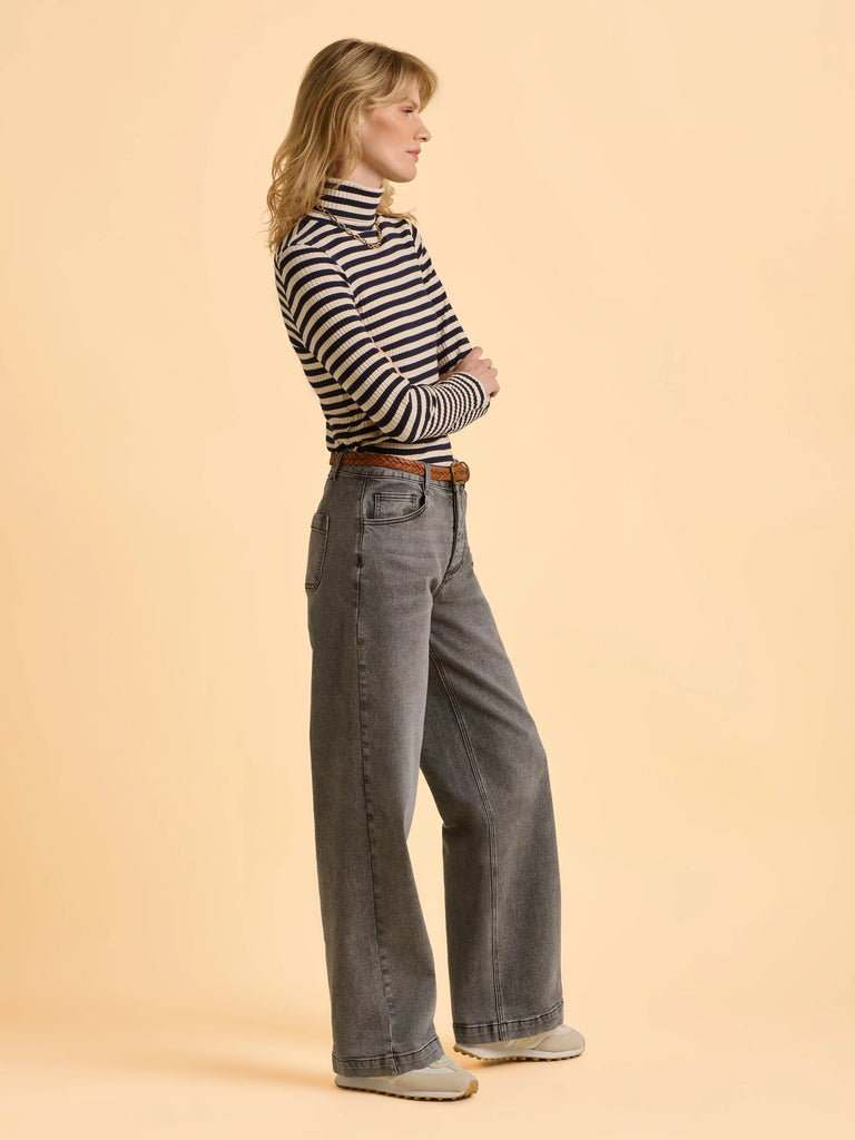 Brakeburn Sylvia Long Sleeved Roll Necked Top - Navy Stripe