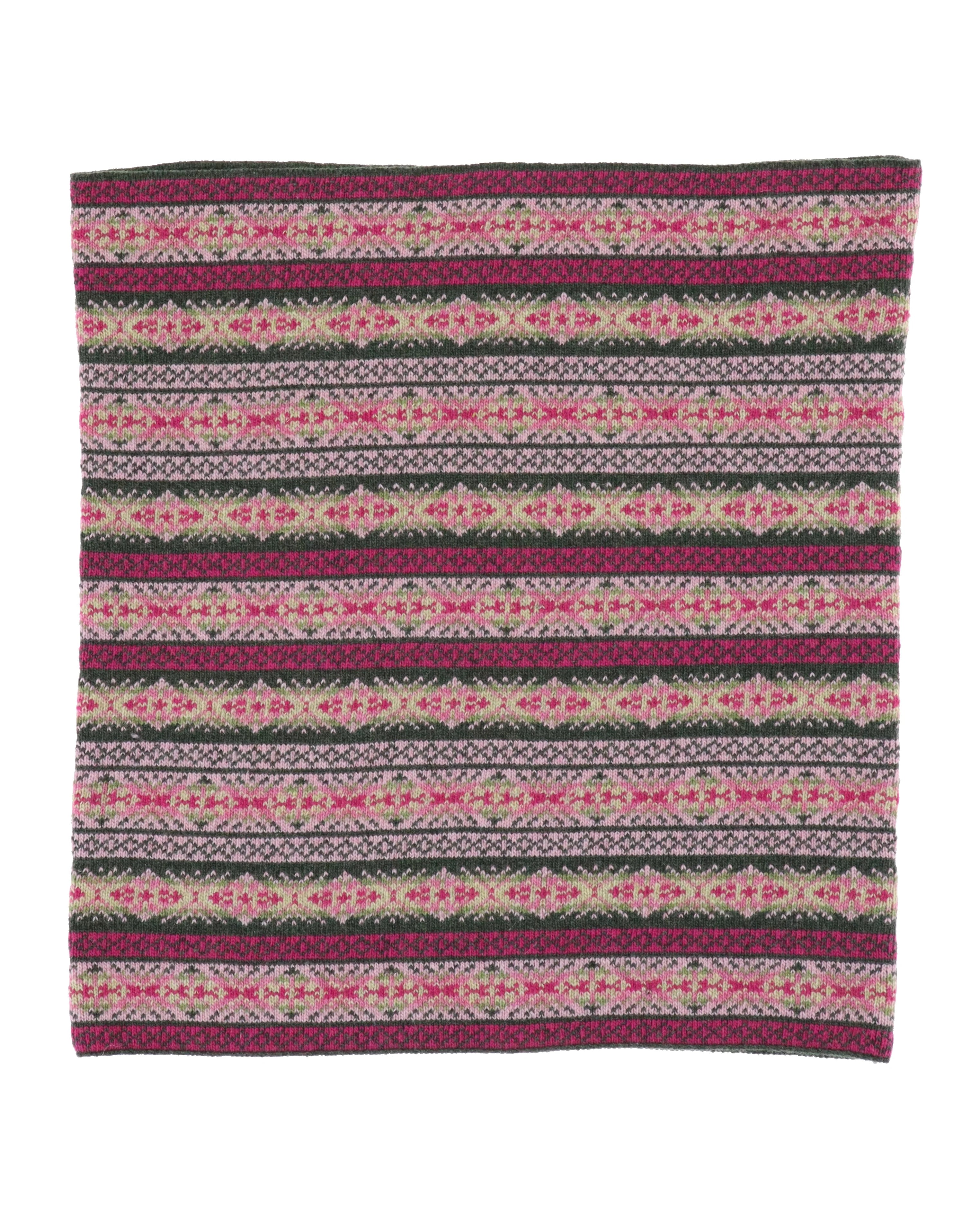 Cadenza Cashmere Blend Fairisle Snood Fuchsia Pink, Verdant Green & Pistachio
