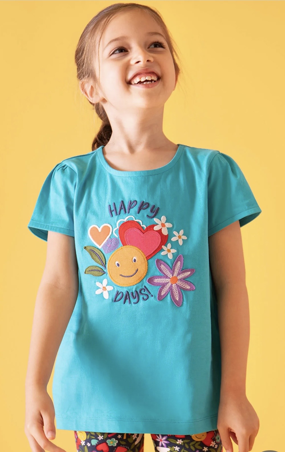 Meet the Lia Applique T-Shirt - a super soft and snug top made from 100% organic cotton. This charming t-shirt features bright, colourful appliques that add a playful touch. Designed with soft gathered sleeves, an A-line shape, and an elasticated back neckline, it ensures easy dressing and all-day comfort.