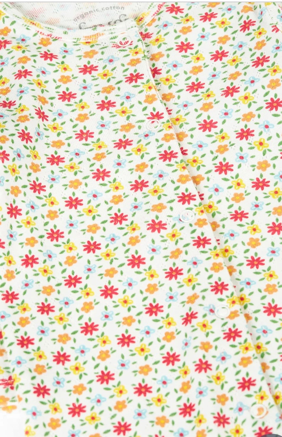 Wrap your little one in breathable softness with our Lovely Pointelle Babygrow, crafted from 100% organic cotton with a bright, colourful Frugi design. Featuring long sleeves, double-layered cosy feet, fold-back scratch mitts, and easy brass-coloured guide poppers, it’s perfect for first cuddles!