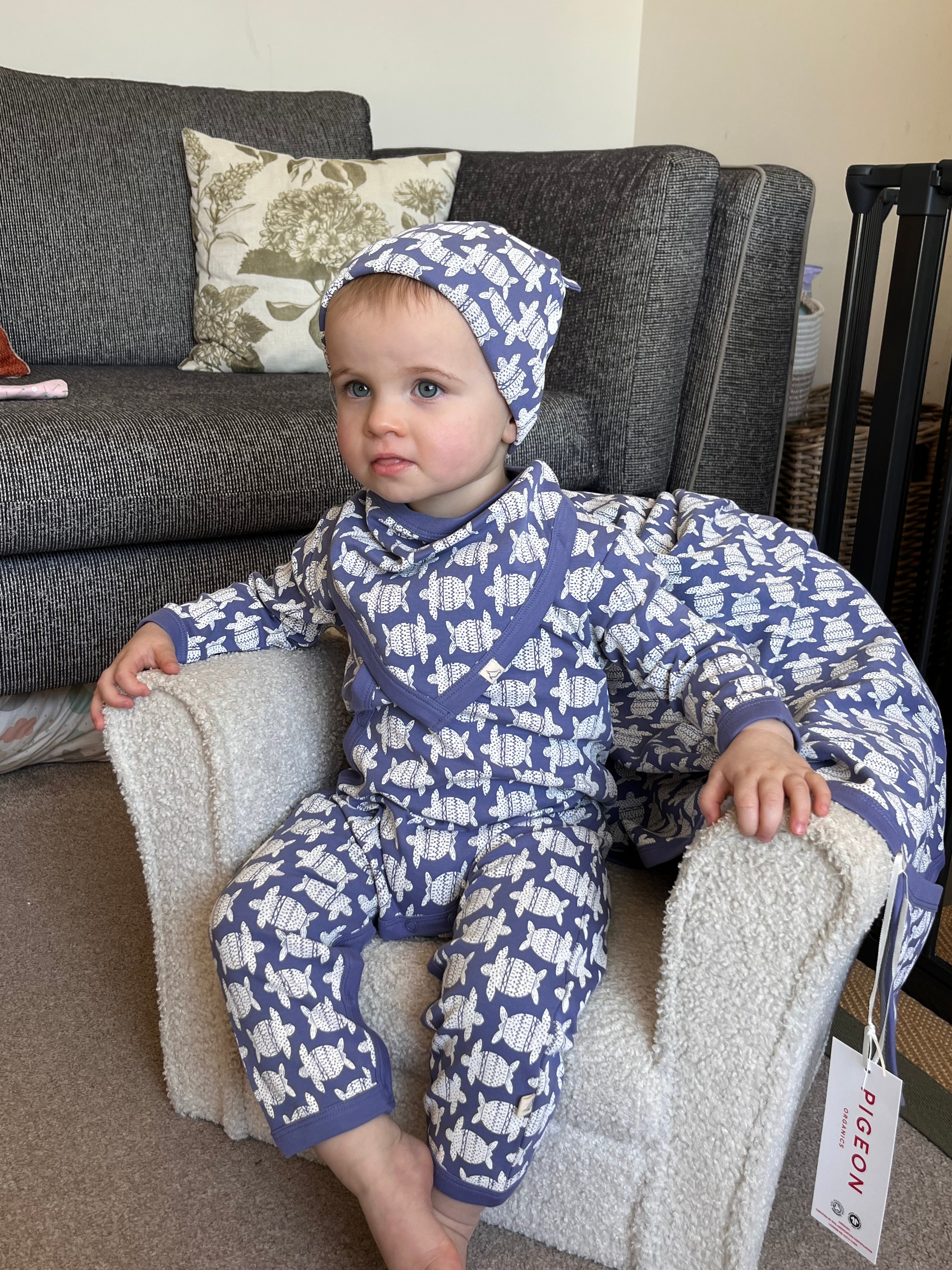 Pigeon Organics Kimono Romper - Turtles - Indigo - 0-3 months is backordered and will ship as soon as it is back in stock.