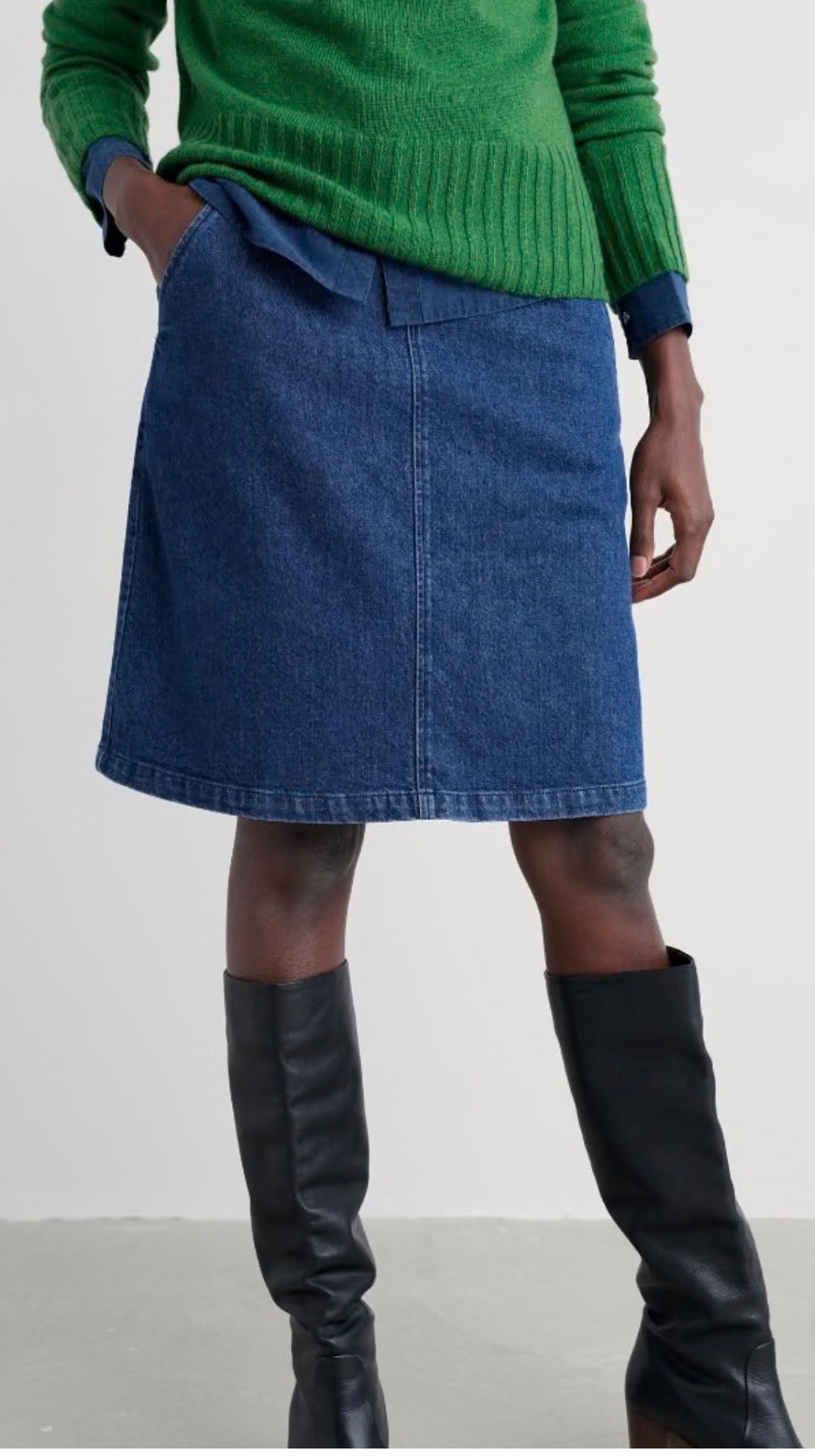 Our Dovetail skirt is one of those versatile pieces you'll reach for time and time again. The A-line silhouette finishes just above the knee - the perfect length to wear with long boots in the winter or sandals in the summer. A pair of generous side pockets completes the look.