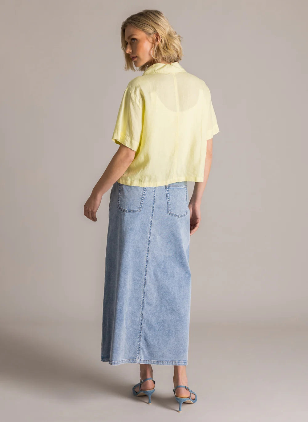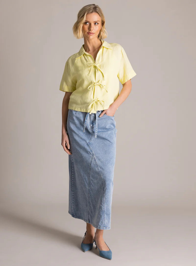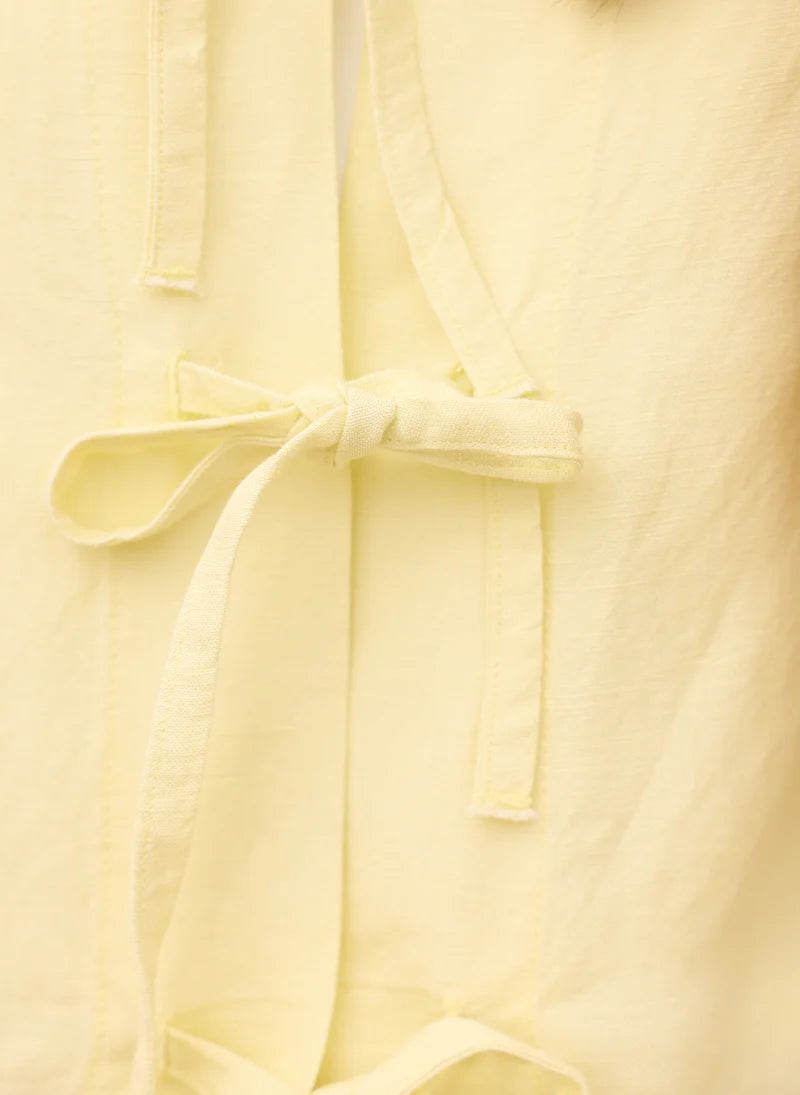 The Karinne blouse exudes spring! The linen-viscose fabric feels wonderfully light, and the bows at the front give it a playful effect. In soft pastel yellow, this is exactly the kind of blouse that makes you happy — fresh, comfortable and ready for sunny days.